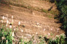 厚さ約 1 mの土層の最下部に挟まれる 1 層の薄い火山シルトは、