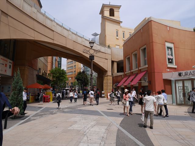 川崎駅東口では、閉店セールをやっているさいか屋の前を通り、チネチッタ通りにまずは向かう。ここは今回、楽しみにしていたところでもある。立澤(2013)によると、この通りには、1987年、シネマコンプレックス「チネチッタ」が開業する(日本初とのことだが、ほかでも日本初を主張しているところがある(Wikipedia))。そして、2002年に、映画館、ライブ・ホールに加えて、物販店や飲食店、スポーツ施設などを有する複合商業施設「ラ チッタデラ」として再スタートした。ラ チッタデラはイタリア語で小さな街、イタリアの町並みをイメージして建物の外観、石畳の通りが造られたという。歩いてみると、それっぽい雰囲気。土曜の午後ということもあり、歩く人も多く、通りに面するカフェテリア、レストランのテラス席で、談笑する姿がみられる。この地に詳しい同行の学生によると、少し前までは、閑散とした通りであったとのこと。実際、西口のラゾーナの開店などの影響があるようである。確かに借り物の街並みであり、景観のイミテーションである。川崎という土地に根ざしたものでもなく、企業によって造り出されたものである。某巨大テーマパークもしかりである。だが、そこには、イミテーションと知りつつ、あえてその中につかの間、入り込んで楽しむ成熟した消費者がいる。街中の商店街もまた、テーマパークのように、一時の夢の中に誘い込むように仕掛けなくてはいけないのではないか。