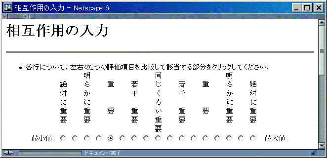 このページは,評価項目の重要度の決定方法で「一対比較」を選んだときのみ表示されます.