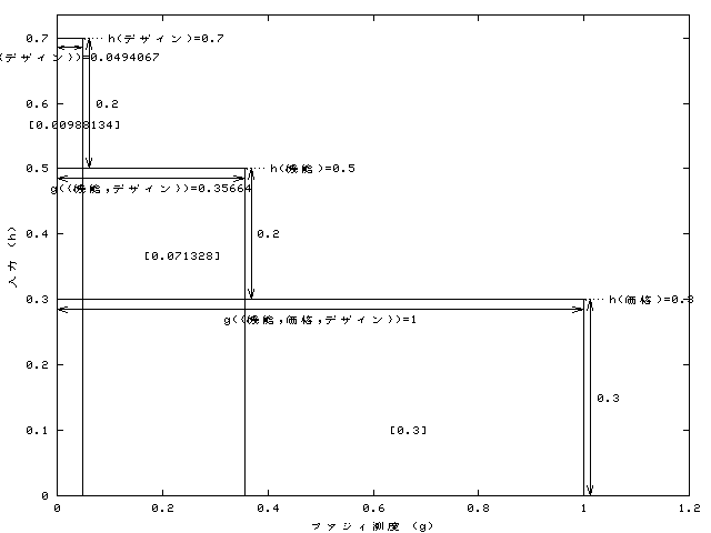 例題で,たとえば,重要度が,「機能」が7,「価格」が5,「デザイン」が3とき,図のように指定します.