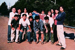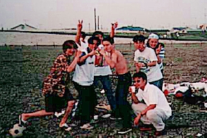![]() 向かって左側が私です。ちなみに右側は友人の宮原です。これはサッカーの試合の時に撮った写真です。なんかさわやかですねぇ。 | ![]() これは私の所属するサッカーサークル「FC−MOMO(モモ)」の創設期写真です。大学一年生のときに出会った仲間で創設しました。私は大学二年まで少しずつ参加していましたが、現在では後輩へと受け継がれ、相変わらず対外試合をしているようです。 |