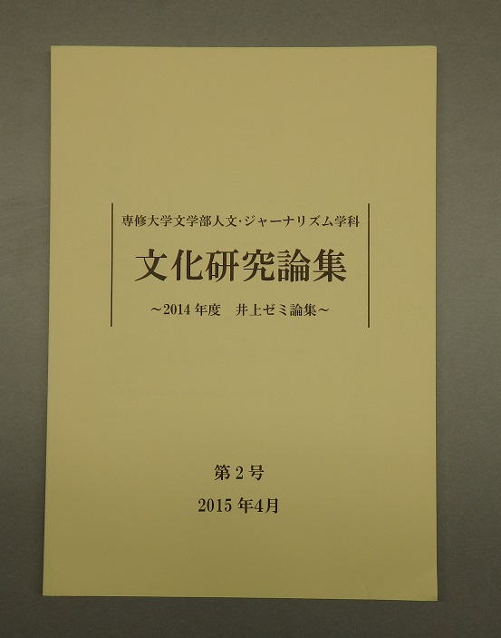 ゼミ論集ができ上がりました。石川ゼミの常広百合さん、井上ゼミの関菜津子さん、藤倉結貴さんの書いたものが収められています。