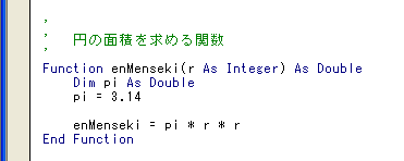 ・7行目  : 最後に「enMenseki」に計算結果を代入します。