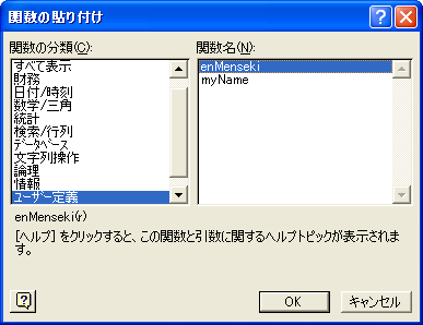左側のリストから「ユーザ定義」を選択し、右側のリストから「enMenseki」を選択してOKをクリックします。