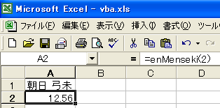 以下のように計算された円の面積の結果がセルに入力されているはずです。
