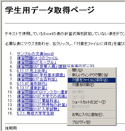 画面上のダウンロードしたいリンクの上で