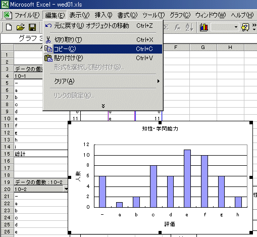 Excelの対象の表やグラフをコピーする(今回は『知性・学問的能力』というグラフをコピーした)